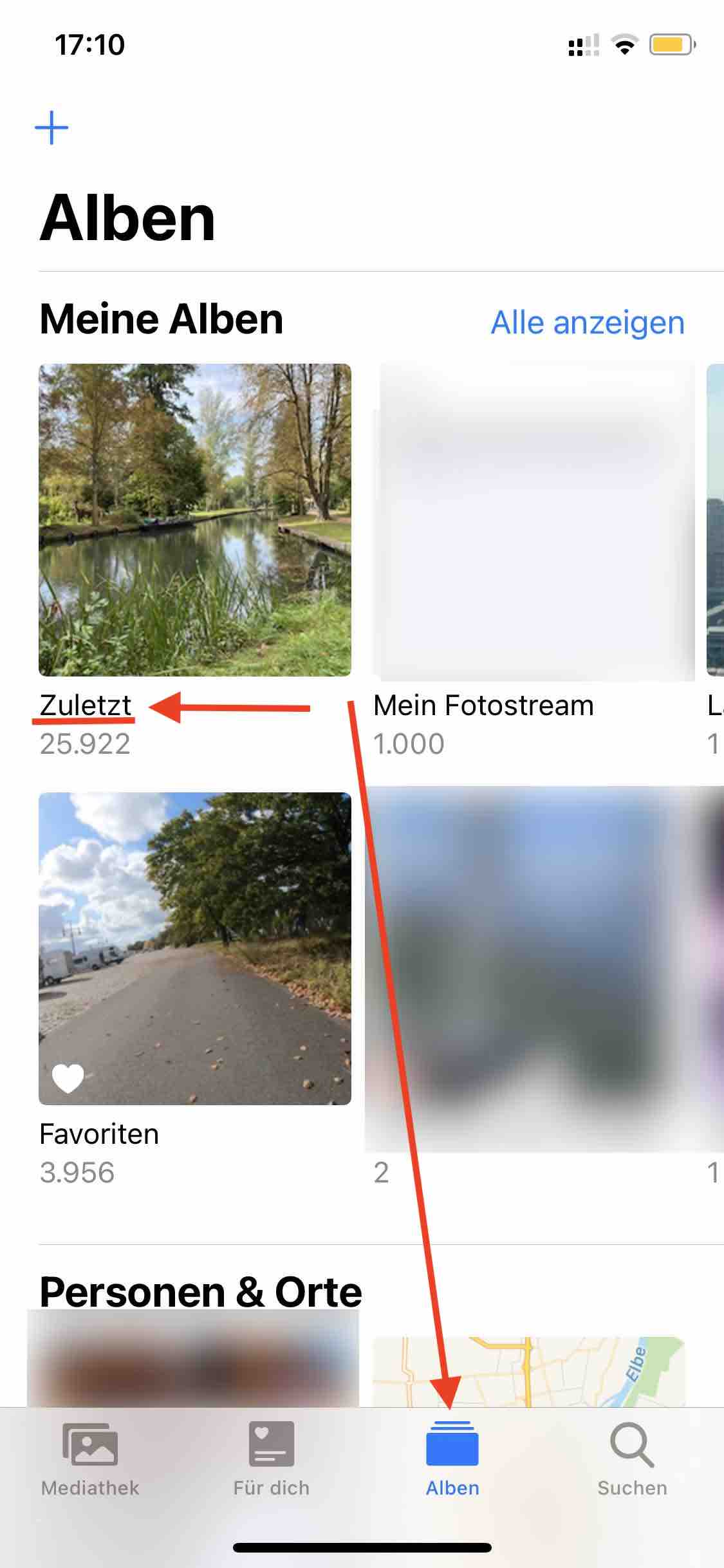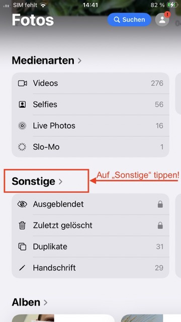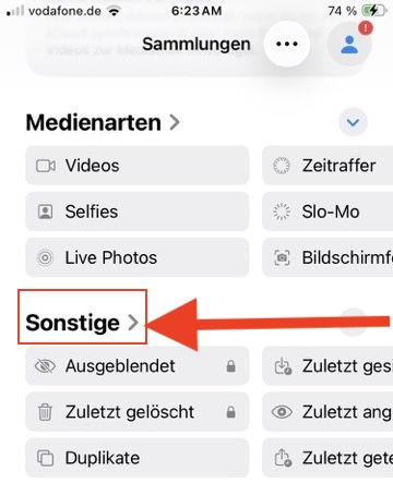 2. Scrollen Sie in Ihrer Fotobibliothek so weit runter, bis Sie folgende Ansicht sehen: